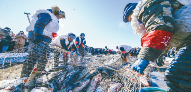 1月24日,2026第十一届沈阳卧龙湖冬捕季启幕,呈现出“鱼跃人欢庆”的丰收景象。李浩摄