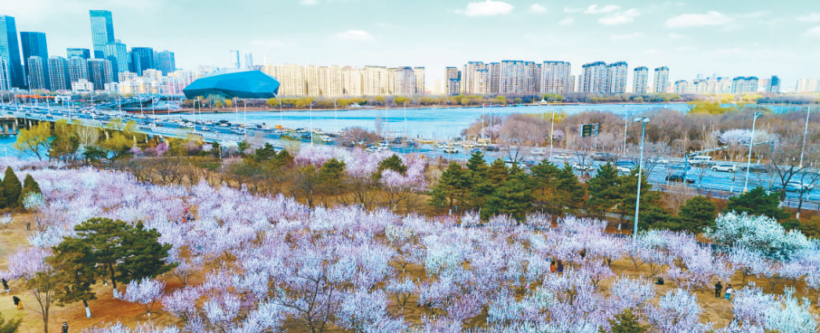4月6日,沈阳浑河南岸市民公园,桃花绽放,春景如画。(李浩摄)