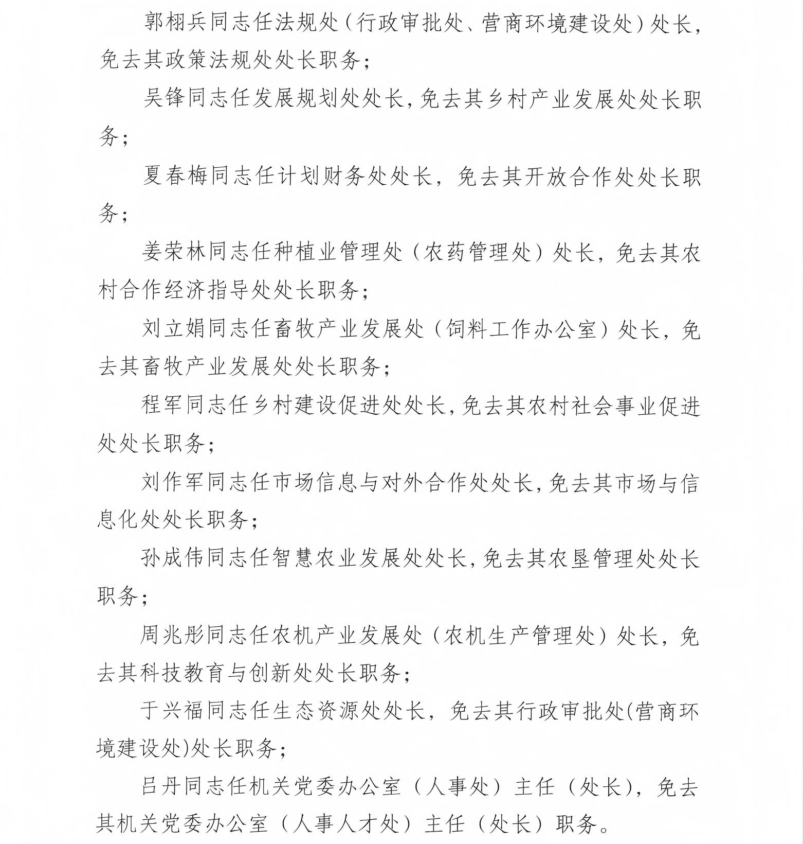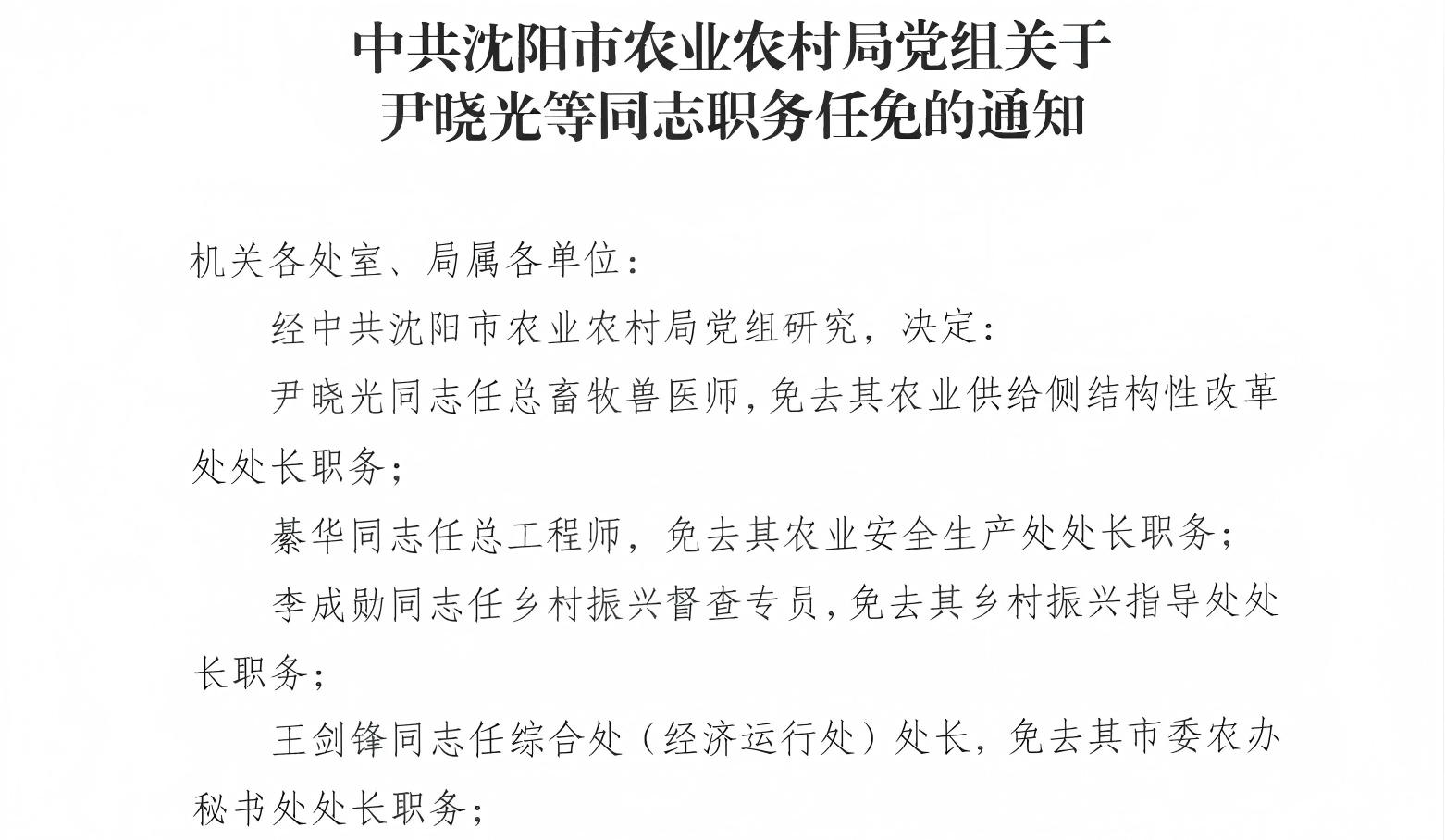 中共沈阳市农业农村局党组关于尹晓光等同志职务任免的通知