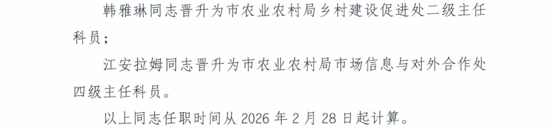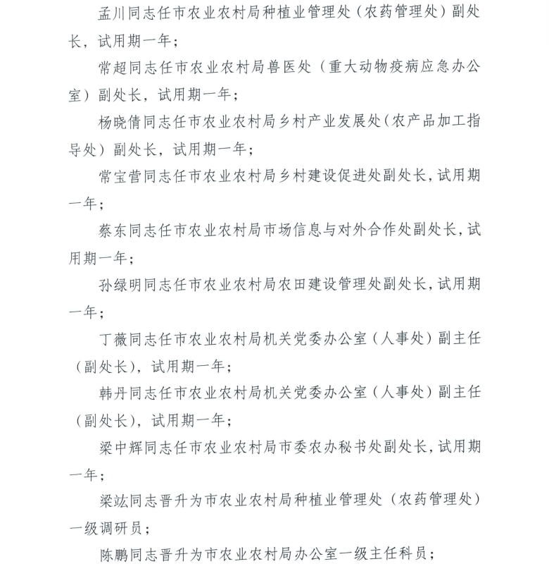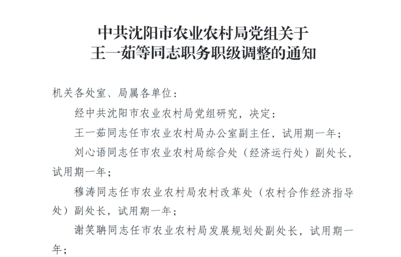 中共沈阳市农业农村局党组关于王一茹等同志职务职级调整的通知