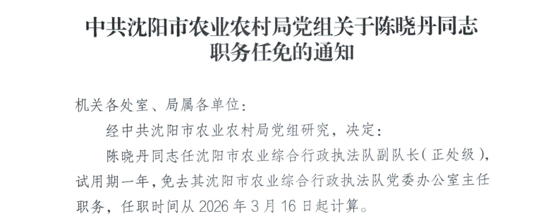 中共沈阳市农业农村局党组关于陈晓丹同志职务任免的通知