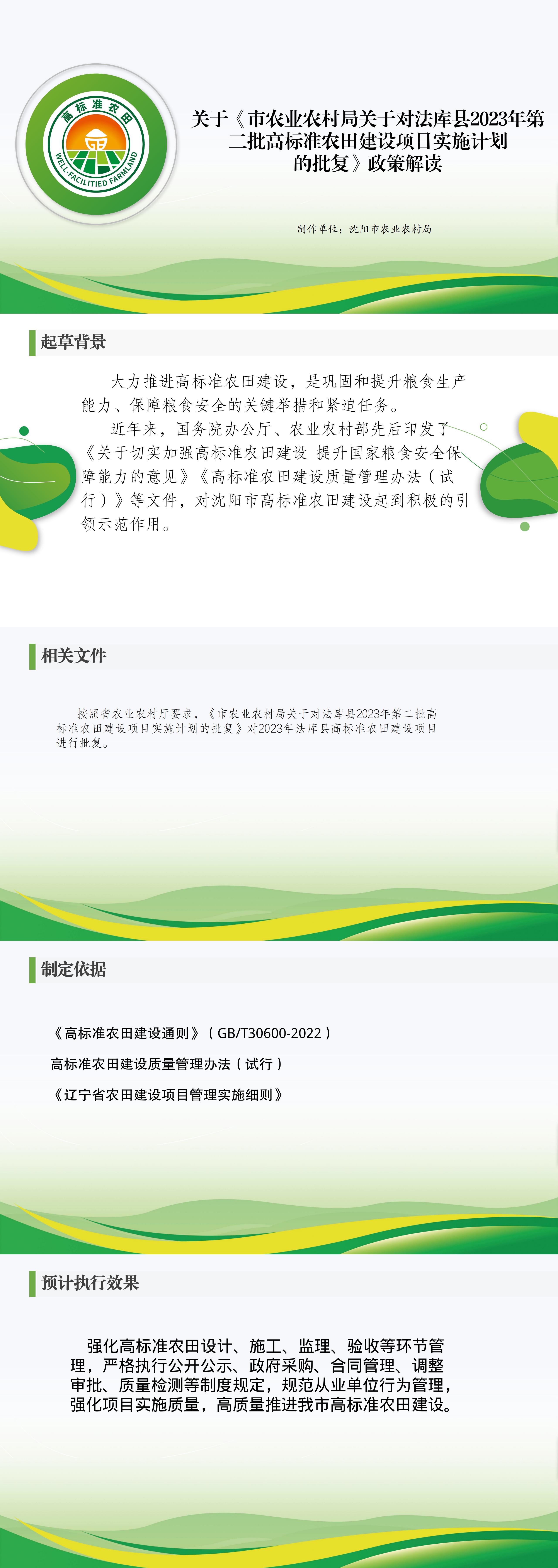 关于《市农业农村局关于对法库县2023年第二批高标准农田建设项目实施计划的批复》 政策解读