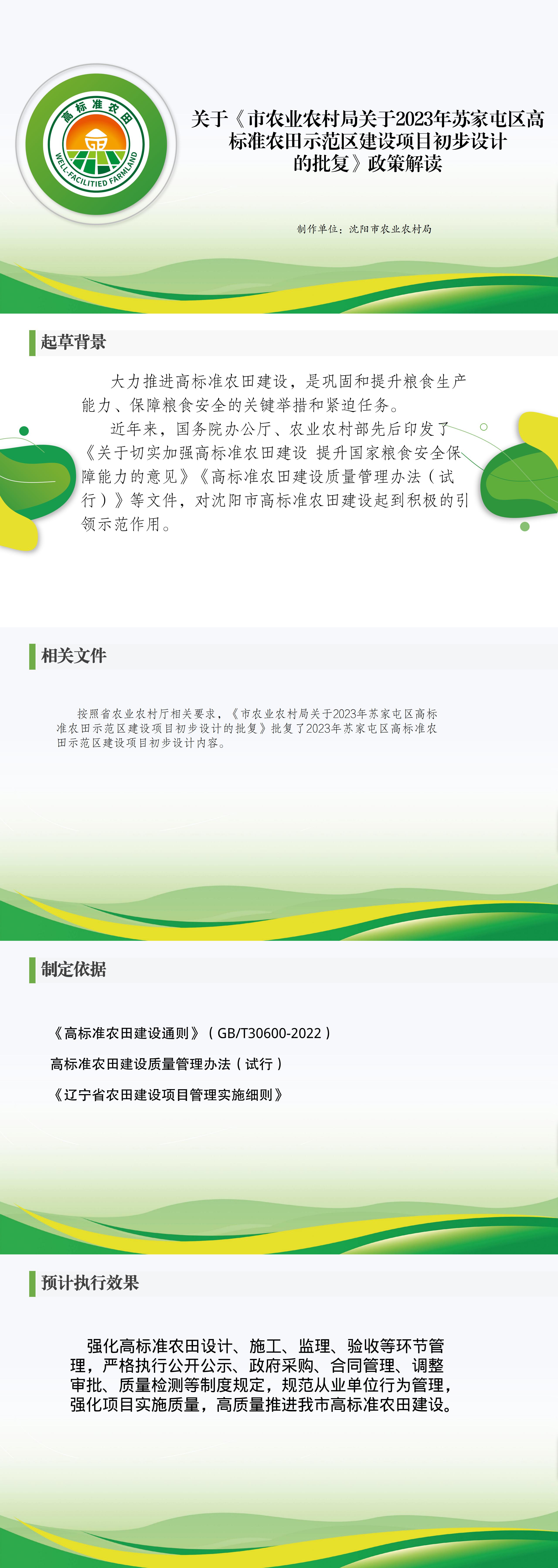 关于《市农业农村局关于2023年苏家屯区高标准农田示范区建设项目初步设计的批复》政策解读